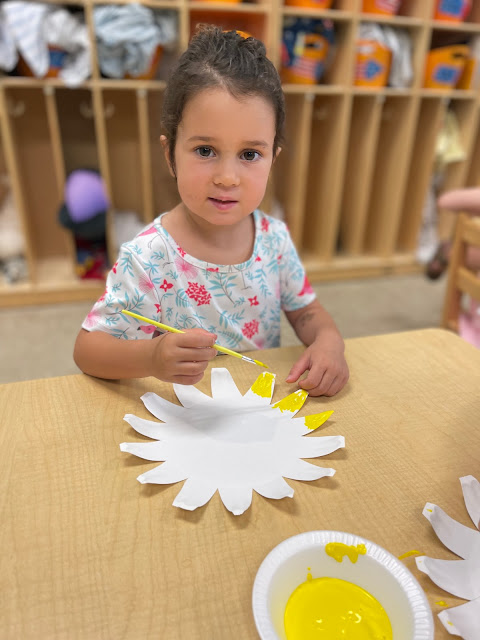 It is Green Thumbs week at AOFC and the kids have had so much fun playing in garden sensory bins, doing sunflower art and reading The Tiny Seed by Eric Carle. They learned all about how flowers grow and the essentials dirt, water, sun and seeds which help gardens produce flowers and food. It was a fun week of getting their hands dirty painting and playing in sensory bins all while learning about flowers, flower gardens and what it takes to keep both the garden and the things growing in it healthy and flourishing!