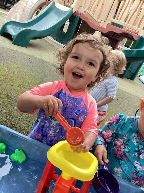 Today was the opening day for our annual summer WATER DAY!! The most anticipated and coveted day of the week especially for some new friends who had heard all the fun stories about it. The water tables were filled and the water slide was ready for the first slide of the morning as well as lost of screams, giggles, splashes and fun. AOFC loves water day and it is the kick off to all the fun of summer!